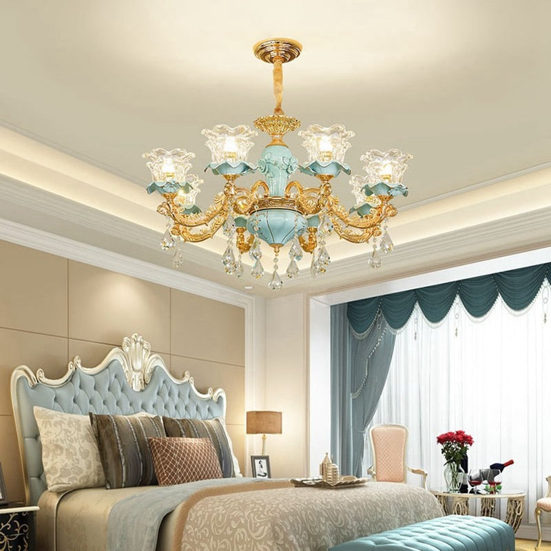 The Luxury K9 Crystal Chandelier brings luxurious elegance and shine to your living room. With its sparkling crystals and noble design, this chandelier creates a glamorous focal point in any room. Perfect for large living rooms, dining areas, or foyers, it offers both impressive aesthetics and generous lighting.