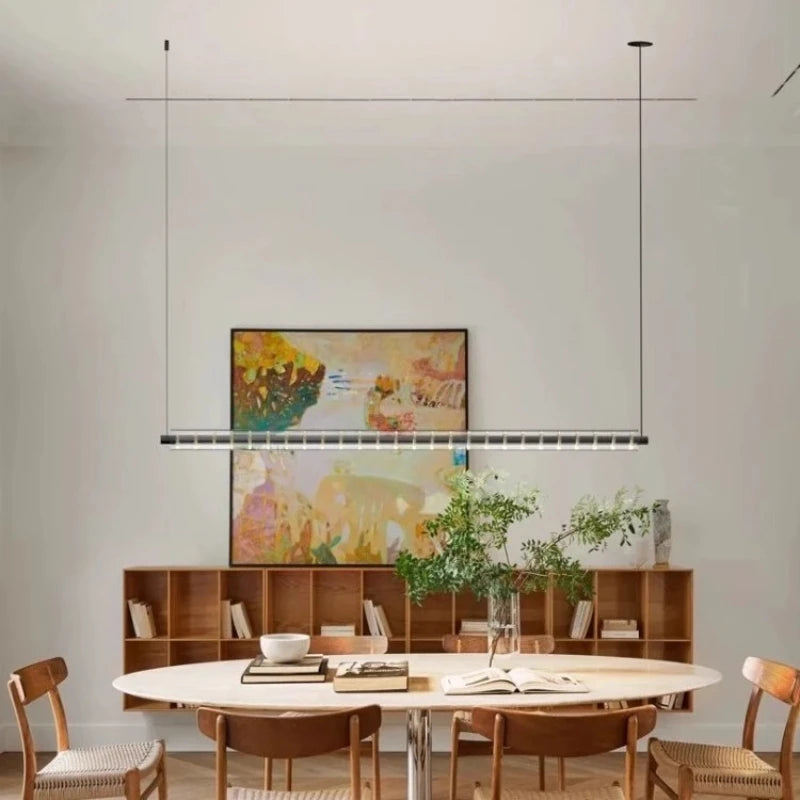The minimalist LED strip light impresses with its elegant and simple design. With its sleek black shape, it fits perfectly above dining tables, in living rooms, restaurants, or even boutiques. It provides even lighting and lends any room a modern look.