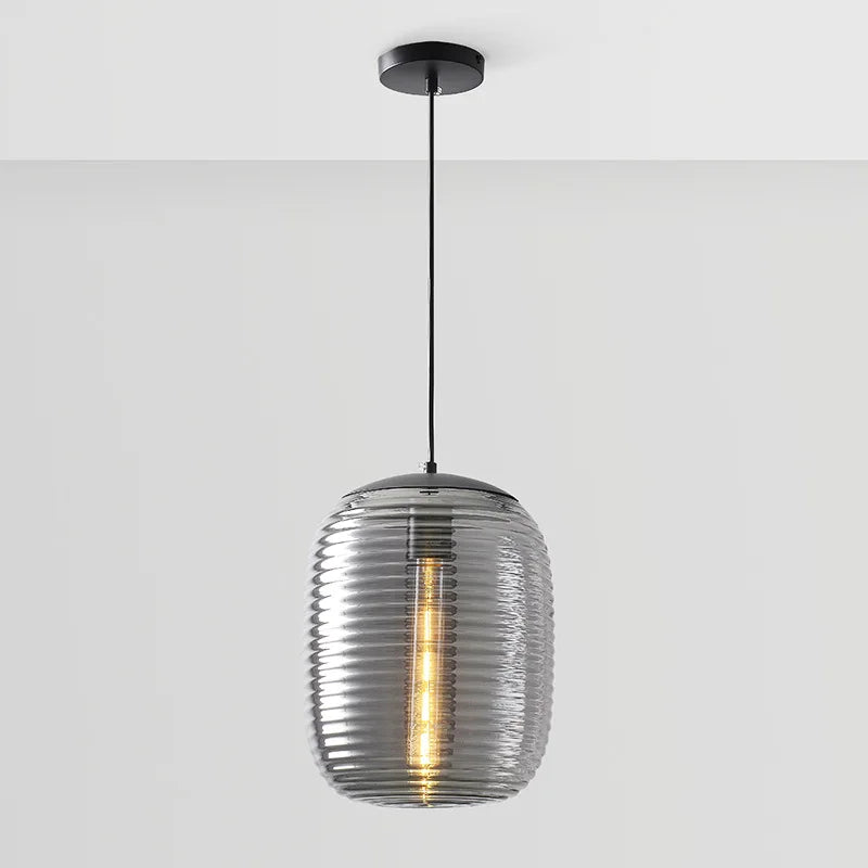 The postmodern glass pendant lamp combines clean lines with an elegant striped design. Its glass and metal lampshade brings modern luxury to dining rooms, bedrooms, or hotels. With its unique look, it becomes a stylish highlight in any room.